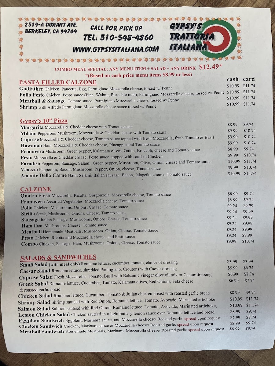 “ Gypsies is a Italian staple for the entire bay area. All sauces are made from scratch we usually get the chicken Alfredo or salmon Alfredo and decided to go with a customer recommendation of the beef Bolognese and have been getting it ever sense. It’s really just raviolis they also have a ravioli Alfredo that you can add chicken to. Do not sleep on this gem order what you can afford. You can turn any one of the meals on the menu into a combo which is a soda plus a salad not to exceed 15.99$!!! Don’t be afraid to double park like everyone else. ”